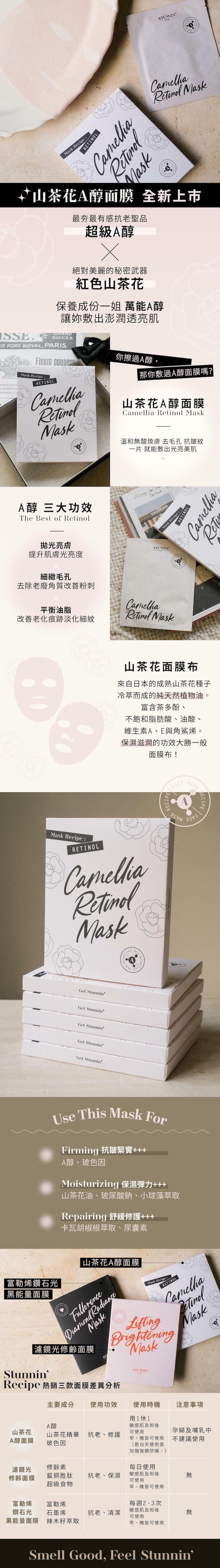 山茶花A醇面膜5片+濾鏡光修齡面膜5片+富勒烯。鑽石光黑能量面膜5片